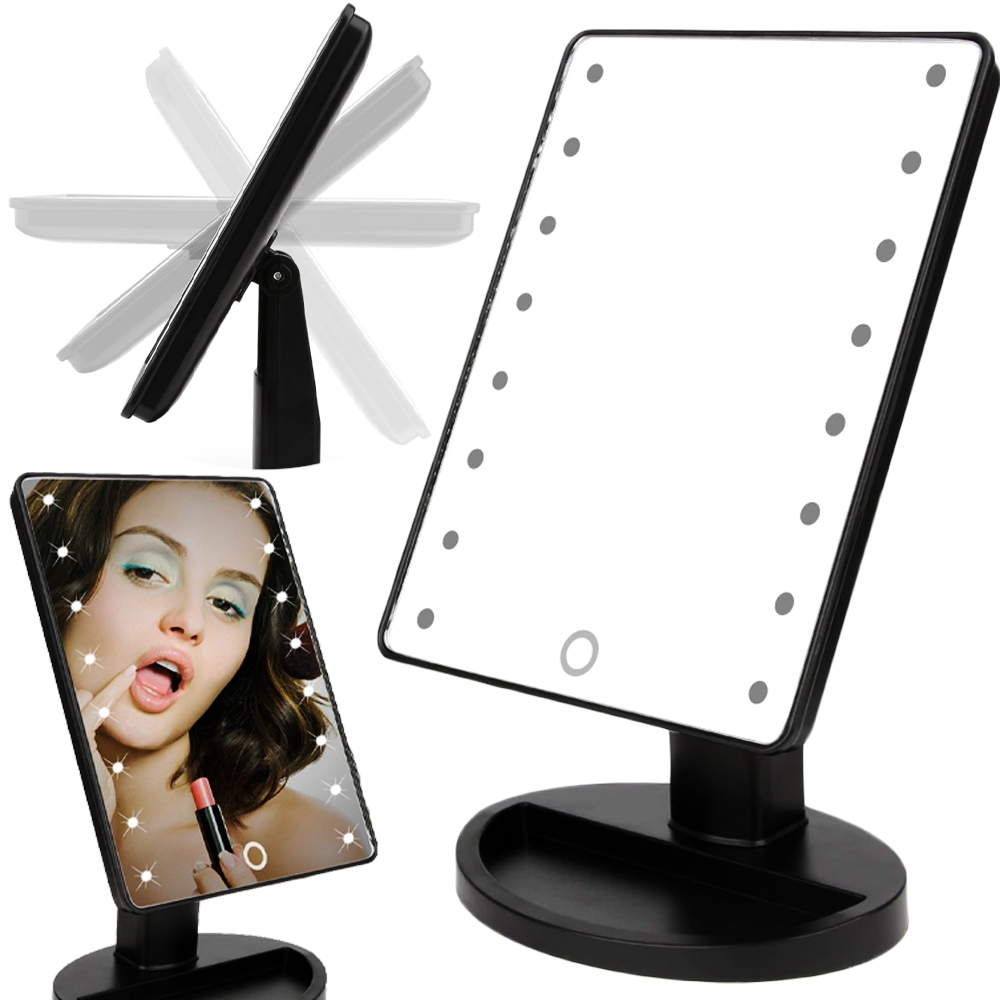 Lusterko kosmetyczne podświetlane 16 LED Czarne