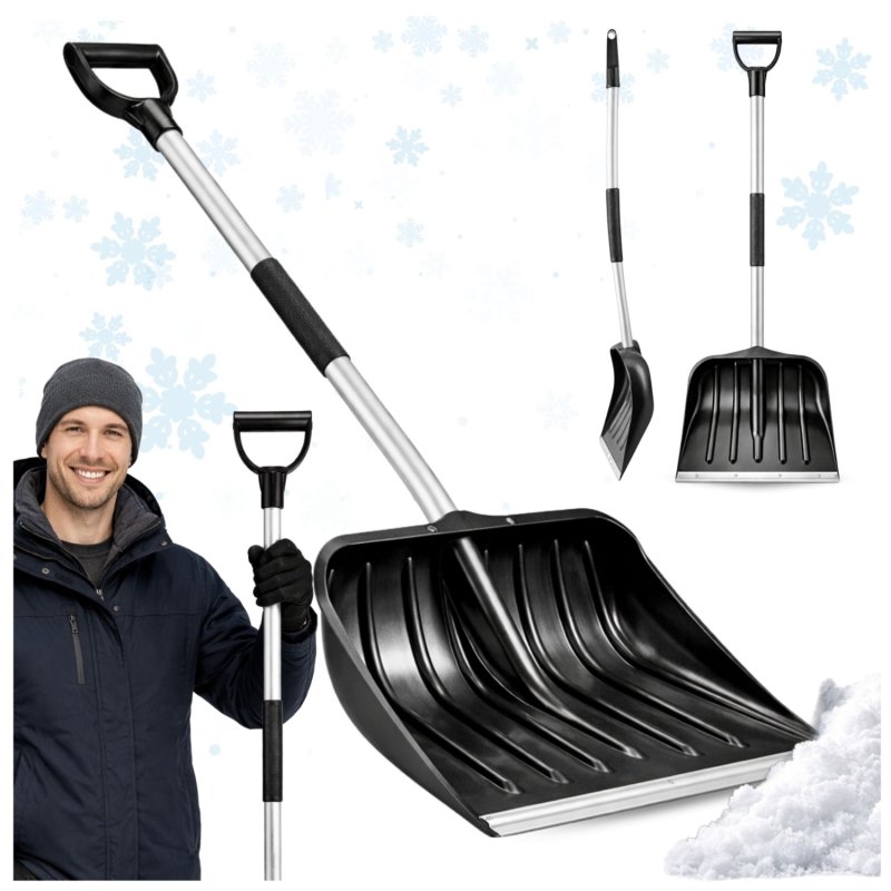 - Aluminiowy trzonek o długości 100 cm gwarantuje stabilność, solidność i łatwe manewrowanie podczas zgarniania i transportu śniegu.