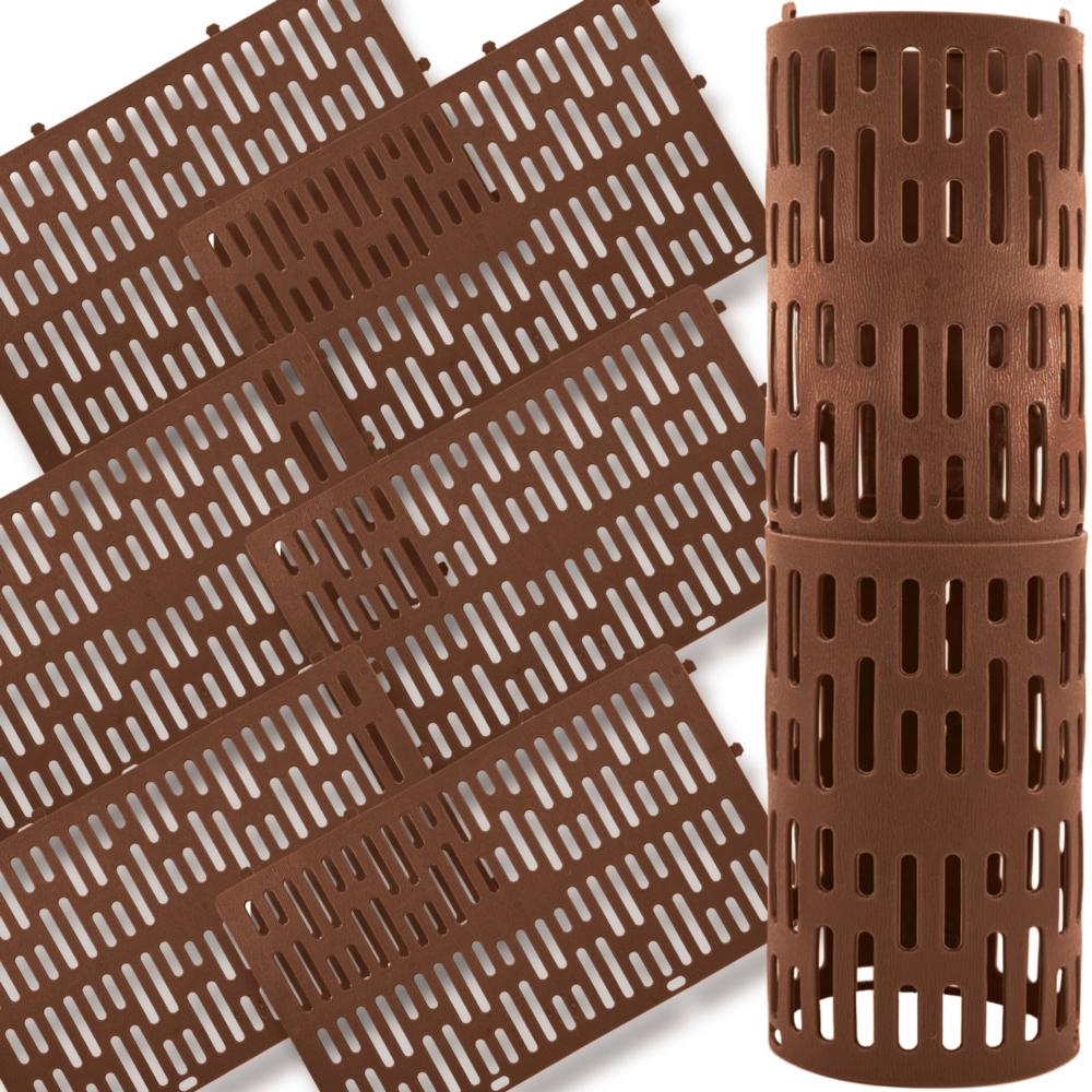 Ciemnobrązowy kolor osłon oraz perforowana powierzchnia wzorem przypominająca korę, sprawiają, że idealnie wpasują się w otoczenie i nie będą zaburzały harmonii krajobrazu.