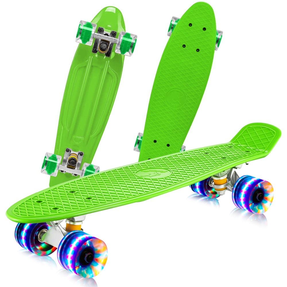 Deskorolka Fiszka dla dzieci z podświetlanymi kółkami LED Zielona