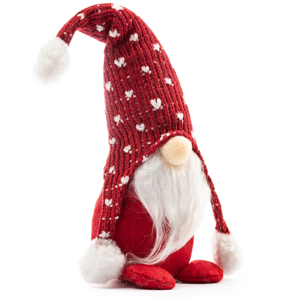 Skrzat świąteczny siedzący gnom w czapce z pomponami
