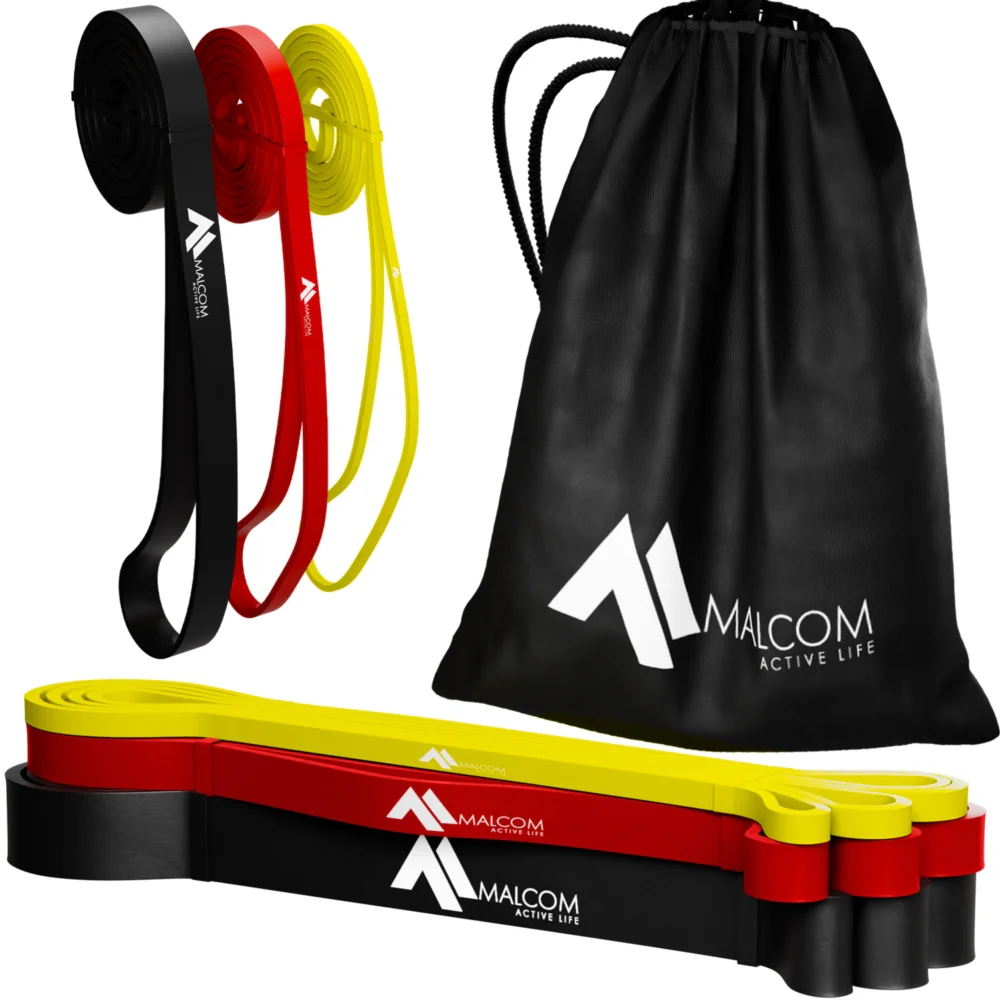 Zestaw 3 gum oporowych Powerband do treningu siłowego oraz fitness + Worek