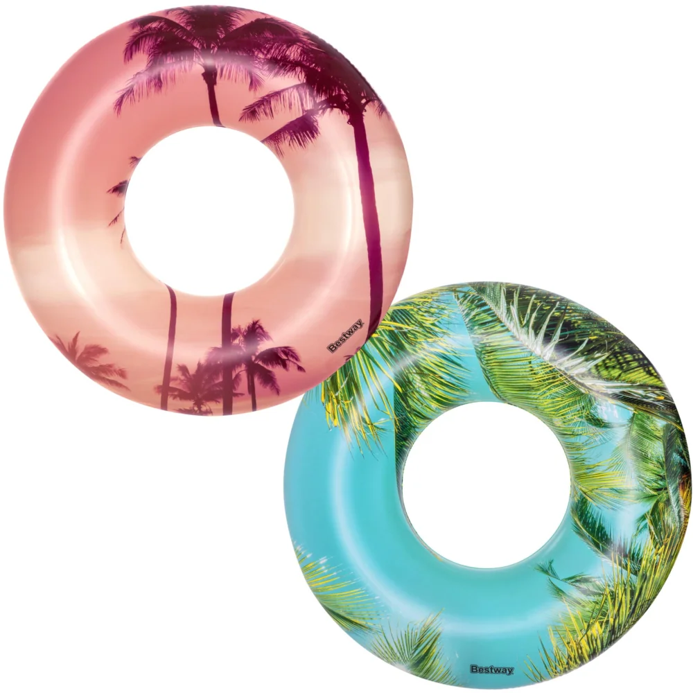 Nadmuchiwane koło do pływania w dwóch kolorach do wyboru z motywem palmowych liści, uznanej na rynku marki Bestway. Szerokość koła to aż 119cm, dzięki czemu mogą z niego korzystać również nieco starsze dzieci. Niezbędny atrybut wypoczynku nad wodą.