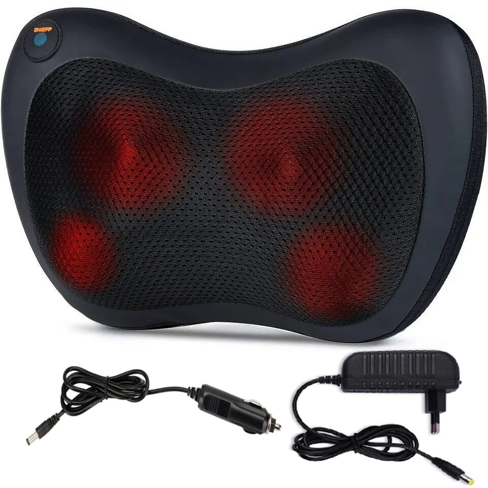 Poduszka masująca Shiatsu z podrzewaniem promieniami podczerwonymi. Można ją podłączyć pod gniazdko w domu 230V i jak samochodowe 12V.