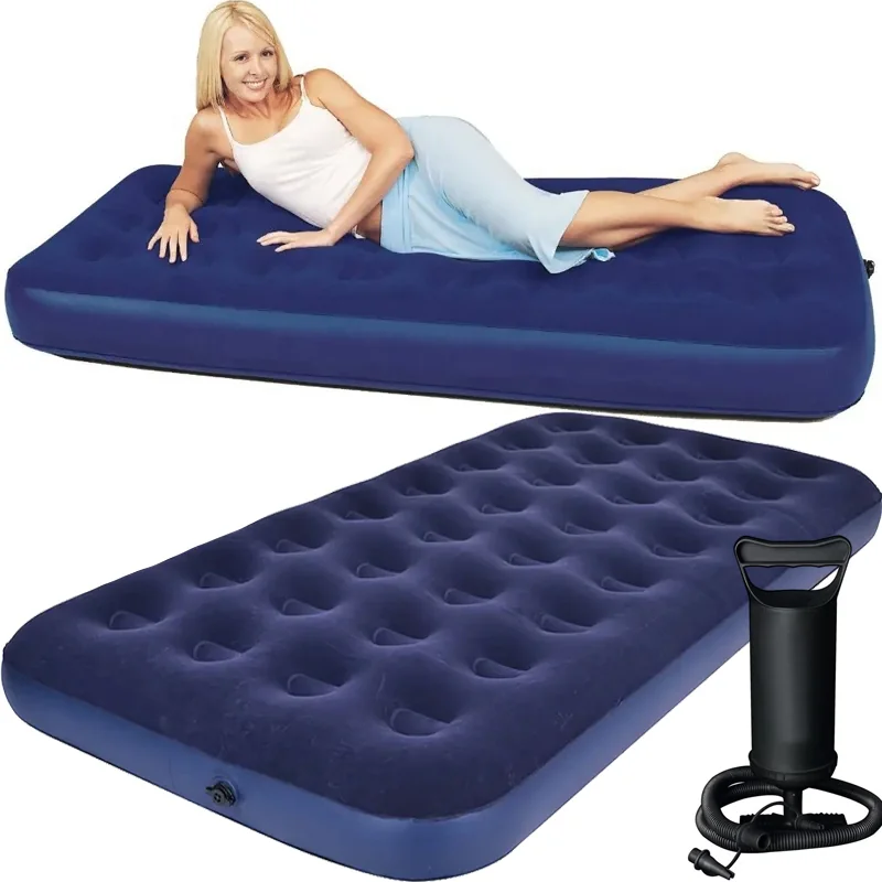 Materac dmuchany jednoosobowy flokowany 191x73cm + Pompka
