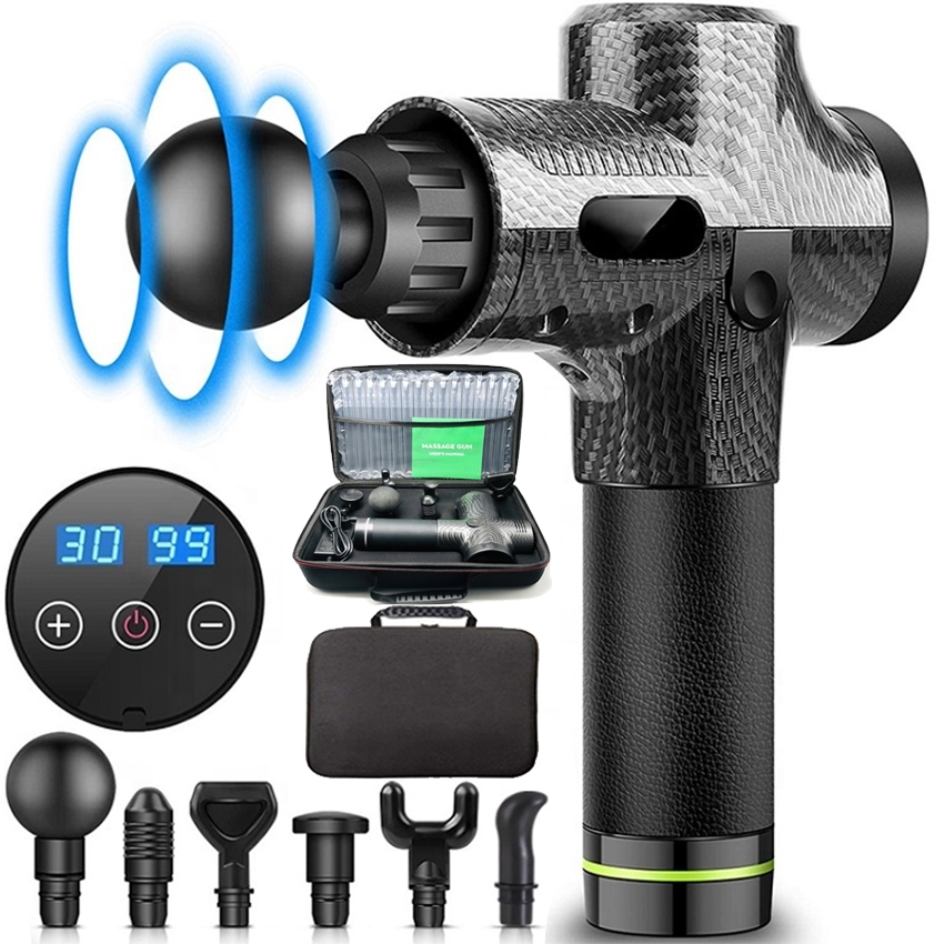 Masażer pistolet masujący wibracyjny CARBON GUN + Końcówki