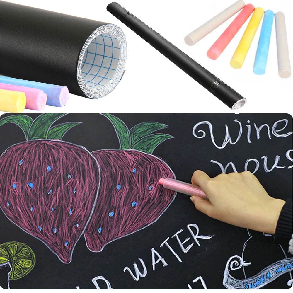 Tablica kredowa samoprzylepna, tapeta do rysowania 45x200cm + Kreda biała i kolorowa