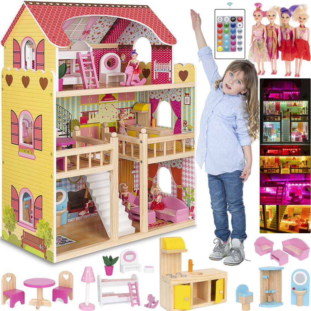 Domek dla lalek + Meble + Lalki + Oświetlenie LED